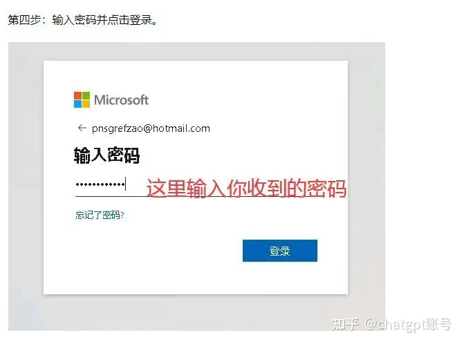 1、微软授权登录,没有chatGP密码,只有微软邮箱密码,登录方式看下面图片登录教程