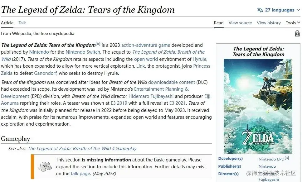 这次它终于摆脱了单机模式,直接上网搜索了 “ 王国之泪 ” 的关键词,然后找到了 “ 王国之泪 ” 的维基百科。