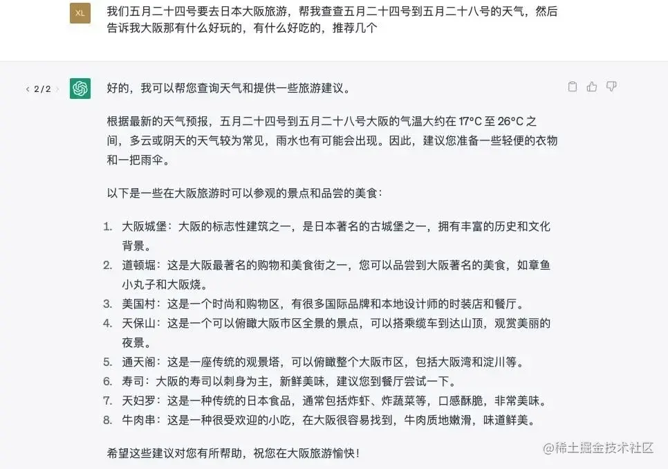 问了问 GPT , 5 月 24 日后 5 天的天气情况,并要求它给我推荐几个好吃的、好玩。
