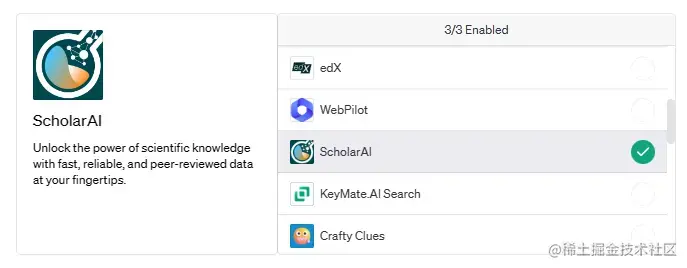但,问题也不止这一点,在我测试其它的一些插件时,比如这个 ScholarAI ,它是一个能帮我查找发表在 Springer Nature 上的期刊的插件。