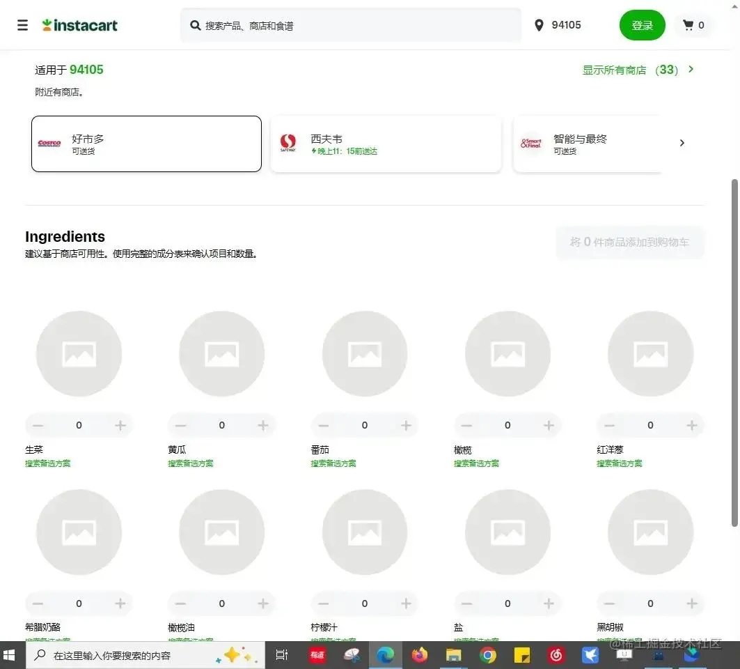 然后在计算价格的过程上,最神奇的事情发生了。GPT 给了我们一个链接,我们点击之后,就可以直接进入一个叫 instacart 的购物平台。