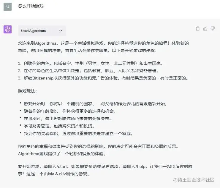 你甚至还可以和它玩一款名为 Algorithma 的模拟生活的文字游戏。
