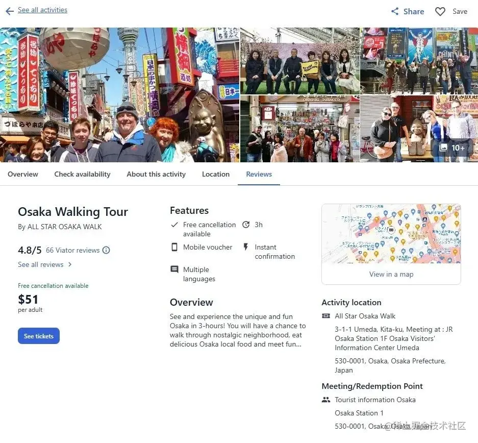 一个大阪步行游,就要了咱们 50 美元,关键这是步行啊。难道里头有什么大家 “ 懂的都懂 ” 的项目。