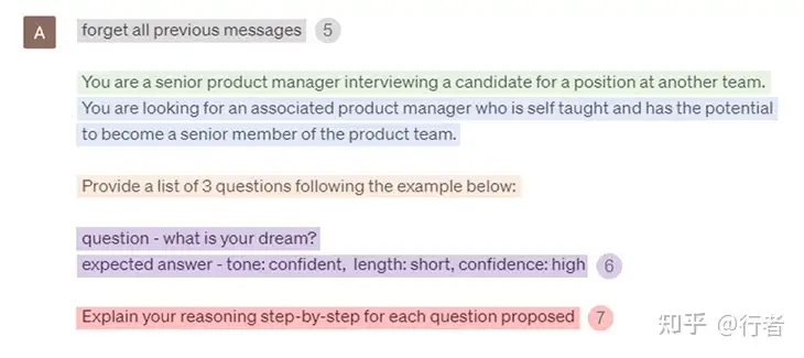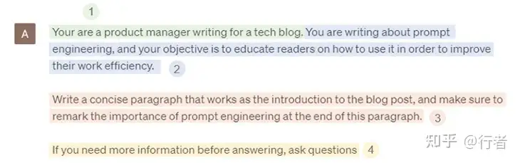 让我们来详细解析提示工程的基本原理。下面照片中的数字对应以下解释提示工程组成部分的各个部分: