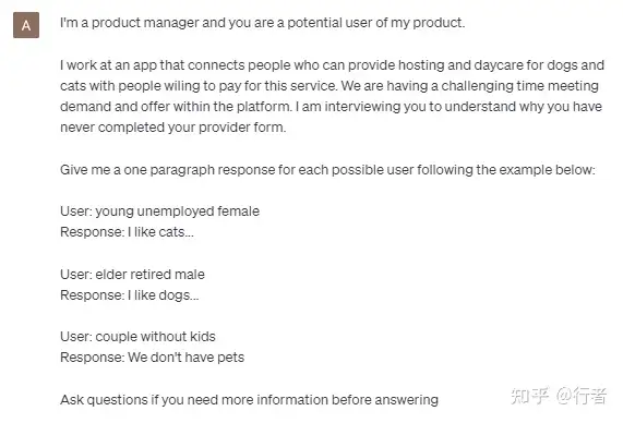 尽管ChatGPT远远不是一个真正的用户,但它基本上可以通过整个互联网作为数据源来推断符合描述的人最有可能告诉您什么。请原谅我,但我认为这已经足够好,可以作为短窗口的定性研究的良好代理,而不需要经历我上面提到的挑战。