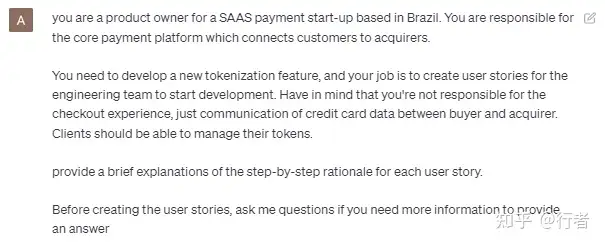 它不仅提出了问题,而且还为我提供了一个包含五个用户故事的答案,其中详细说明了行业监管协议和用户应能执行的特定API命令。我在支付行业工作了很长时间,可以向您保证,作为支付产品经理,我几乎没有什么需要补充的输入。