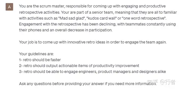 这个提示提供了众所周知的回顾活动建议,但更令人印象深刻的是,它提出了我从未听说过的新活动!